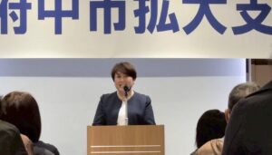 現職の府中市議の大本千香子さんと加島広宣さん、そして、府中支部副支部長の松原晴美さんから元気いっぱいにご挨拶!