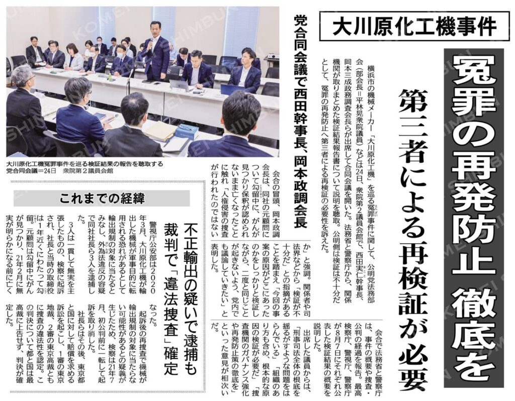 この部会の様子が9/25(木)公明新聞1面に掲載されております。